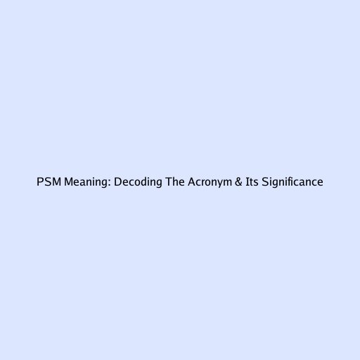 PSM Meaning: Decoding The Acronym & Its Significance